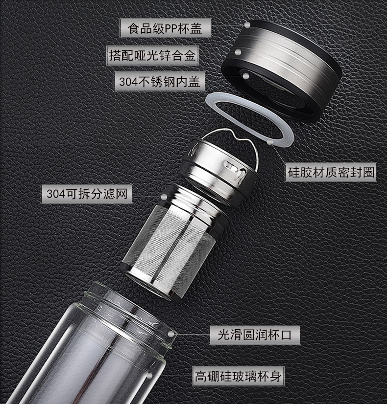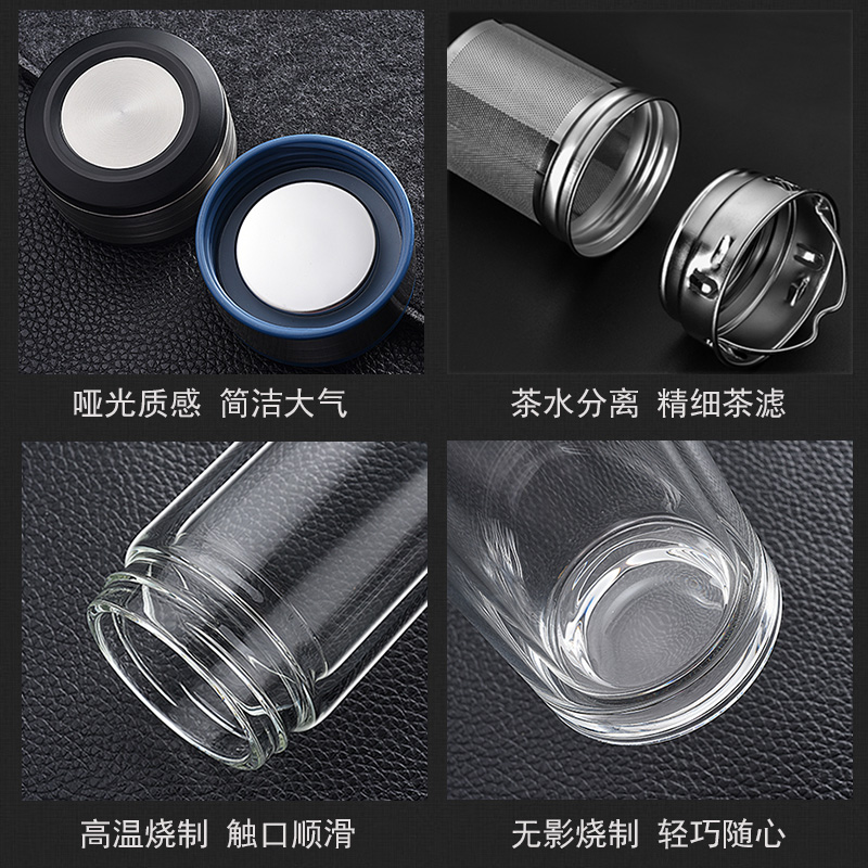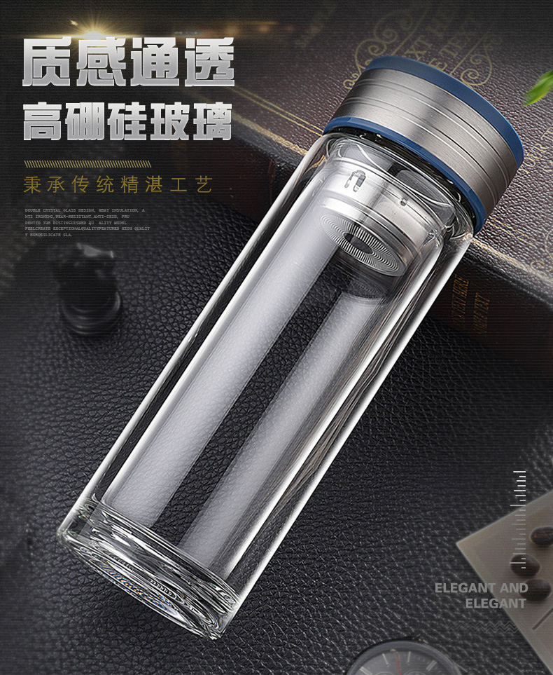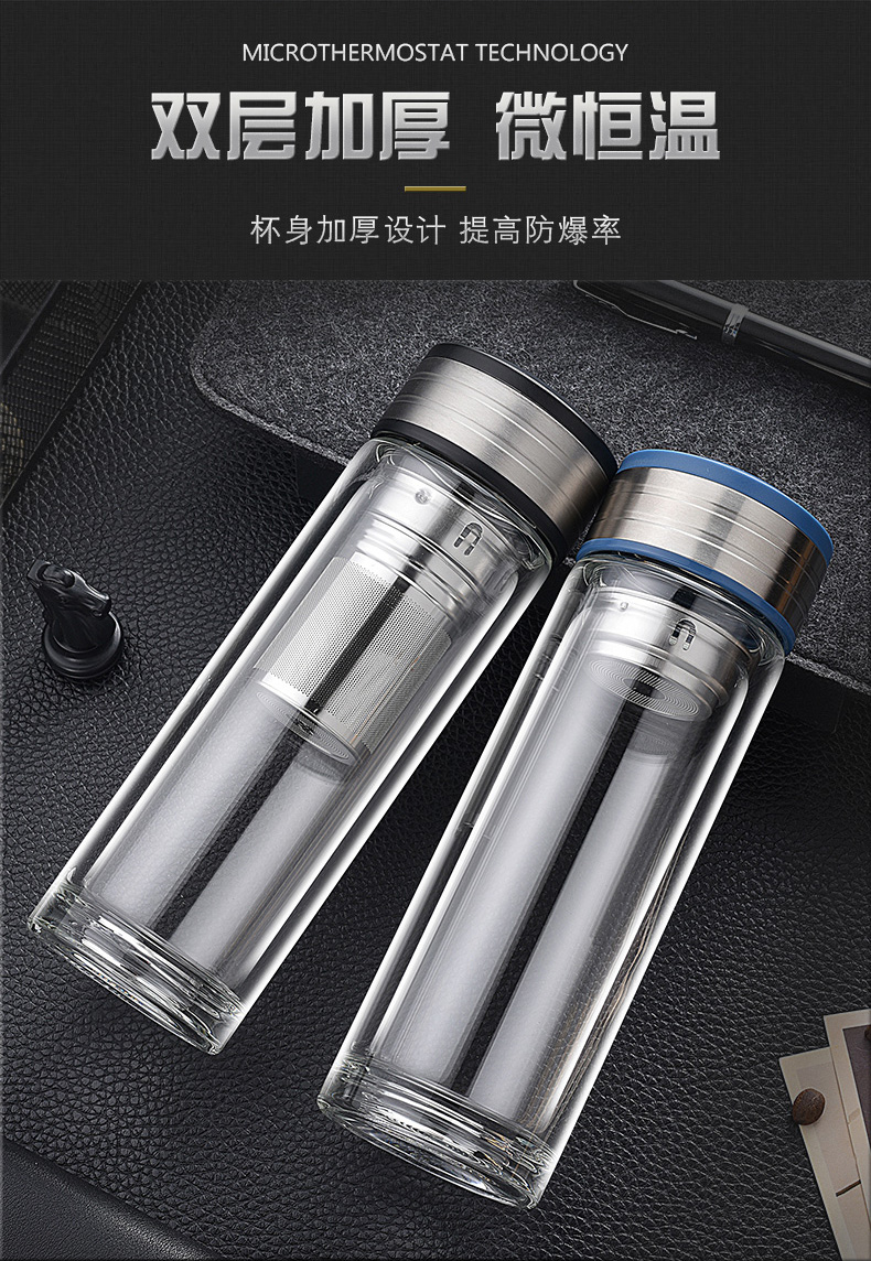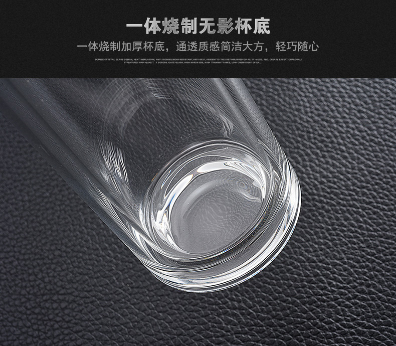 雙層水晶玻璃杯辦公家用泡茶杯耐熱加厚禮品杯子定制刻字印字LOGO