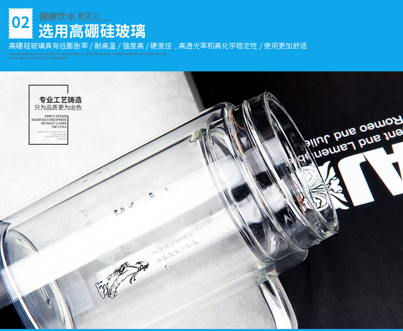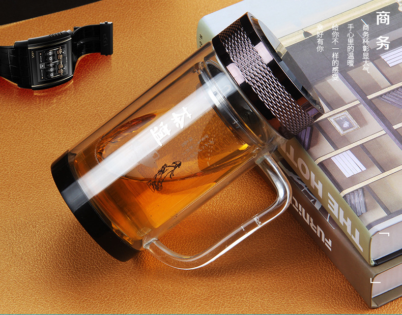 廣東蕾洛商用廚房設備定制高檔雙層水晶玻璃杯商務帶手柄水杯