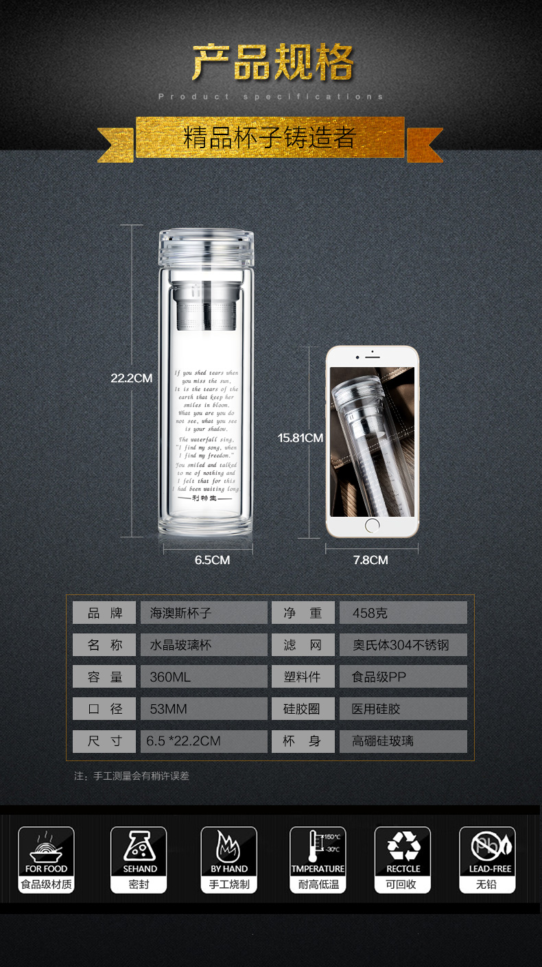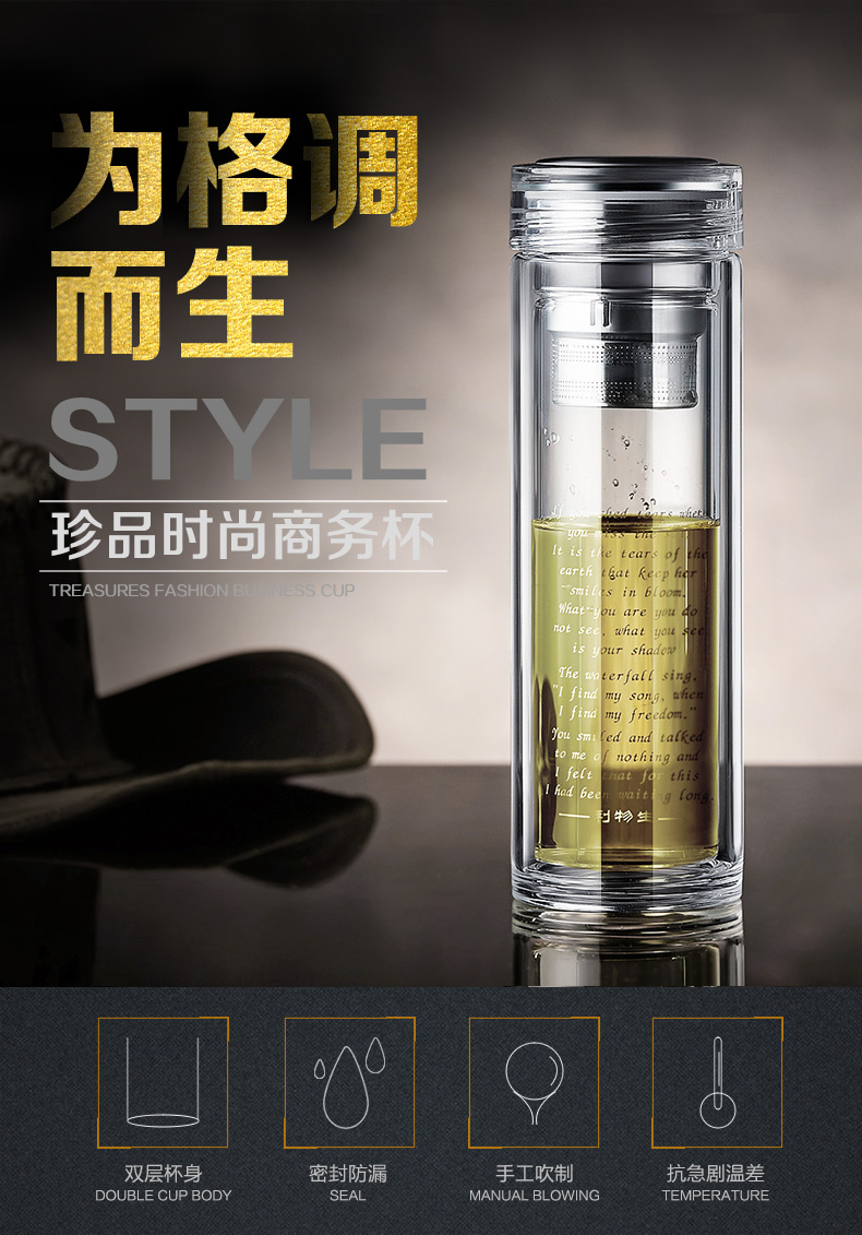 7天連鎖酒店定做雙層便攜隔熱帶網(wǎng)玻璃茶杯