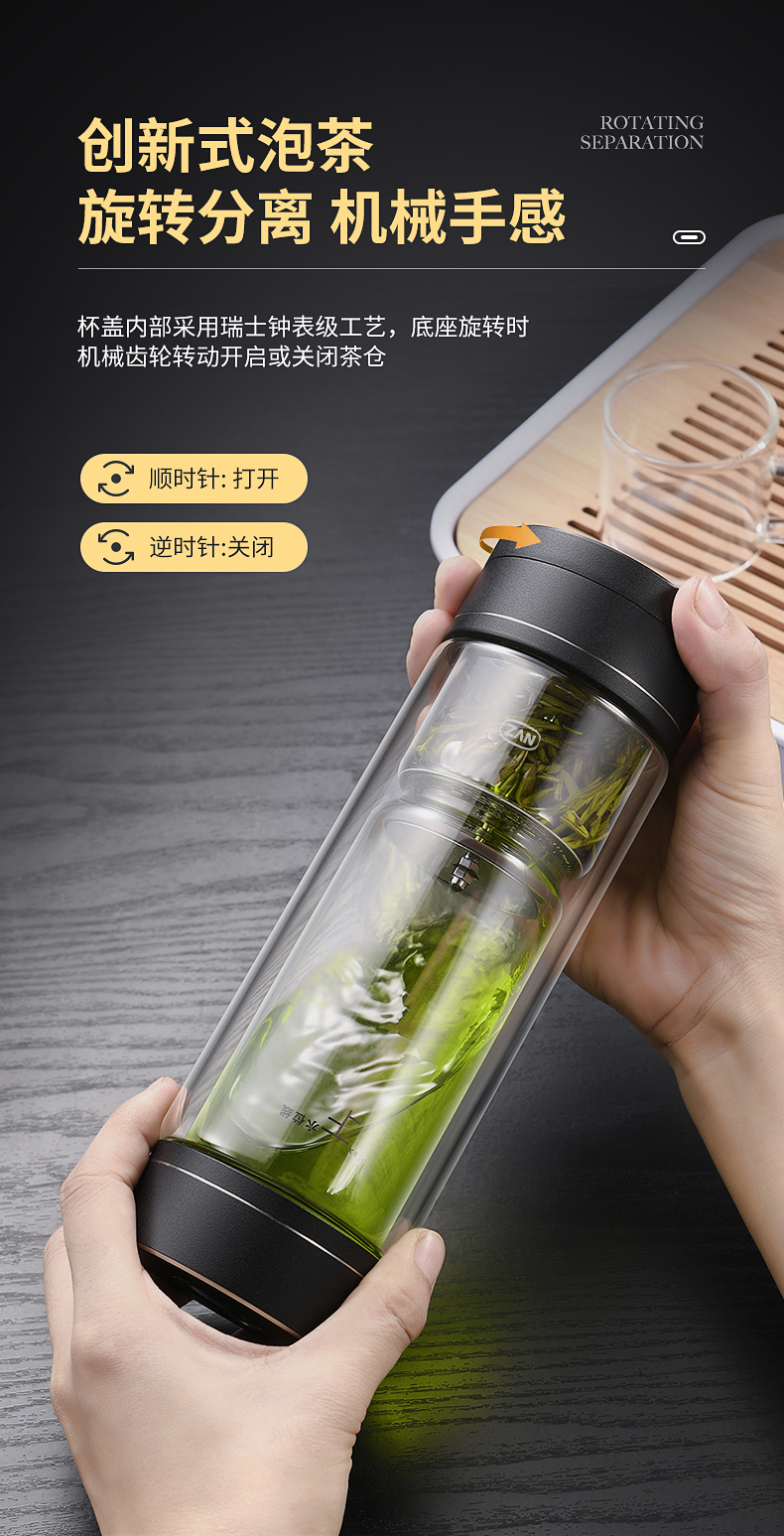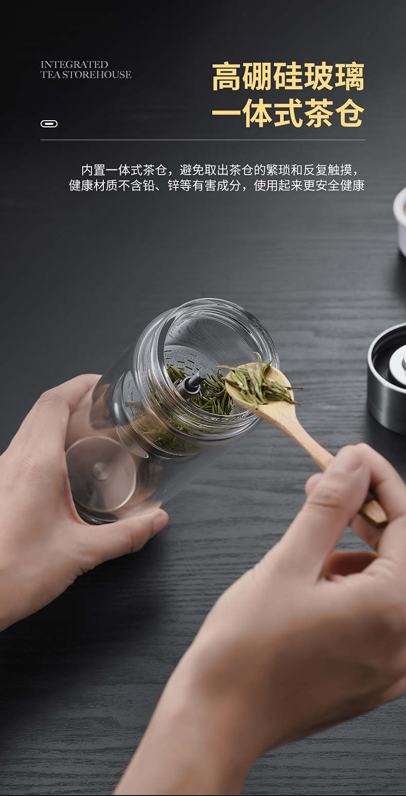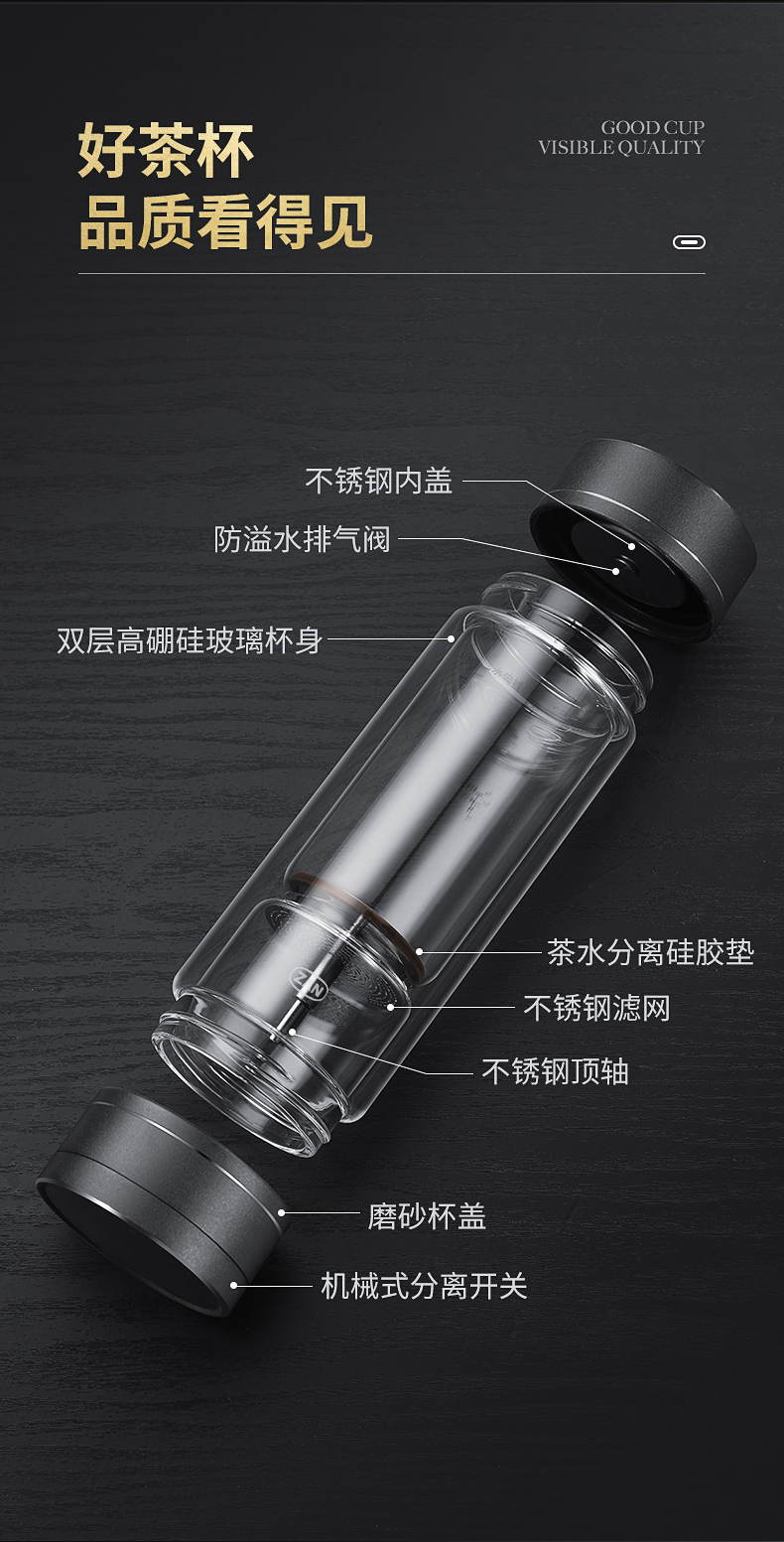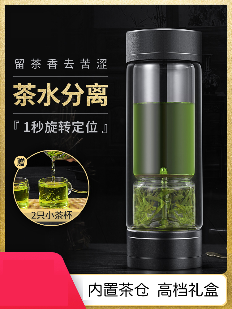 茶水分離杯雙層玻璃杯男女士高檔大容量便攜隔熱透明辦公泡茶水杯