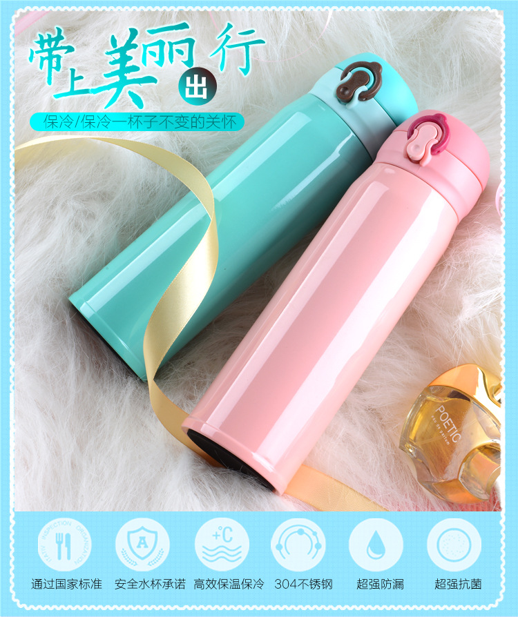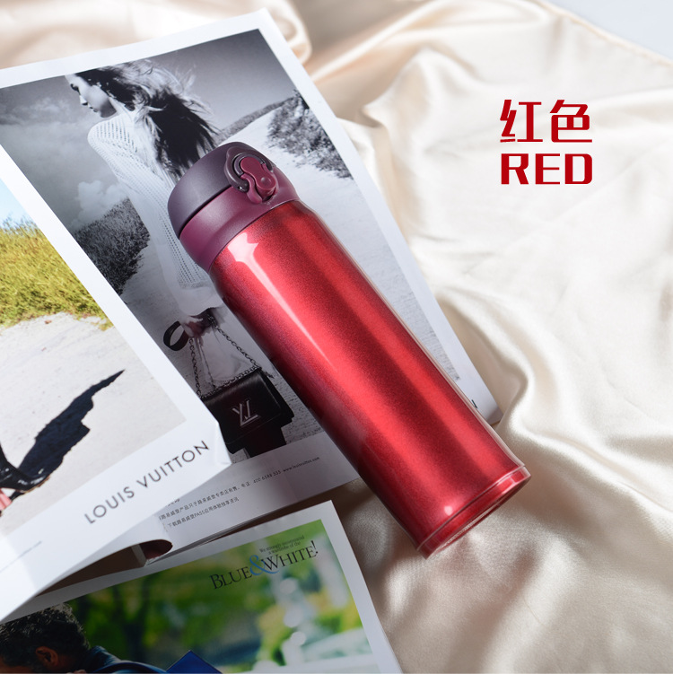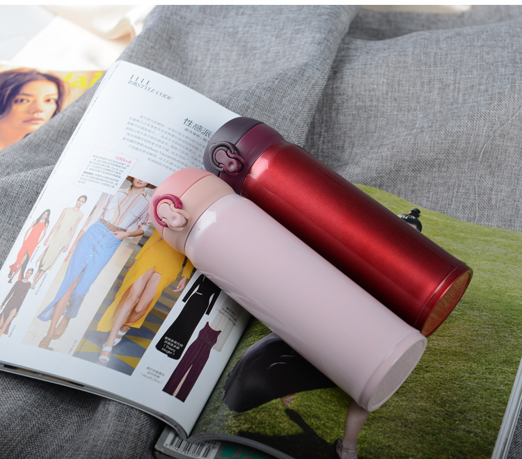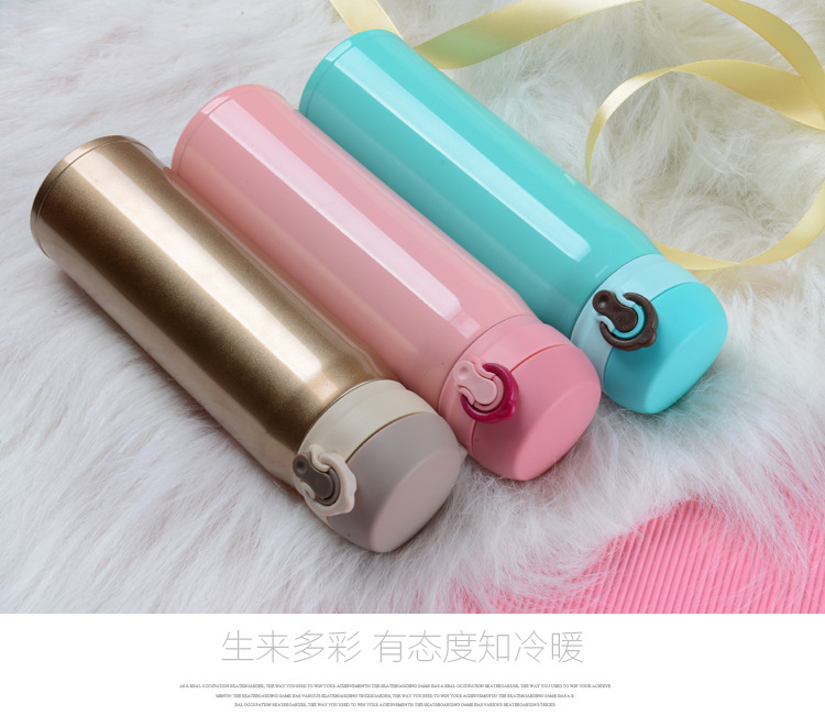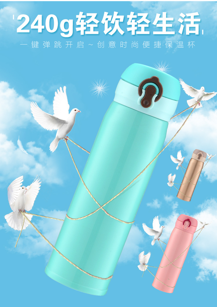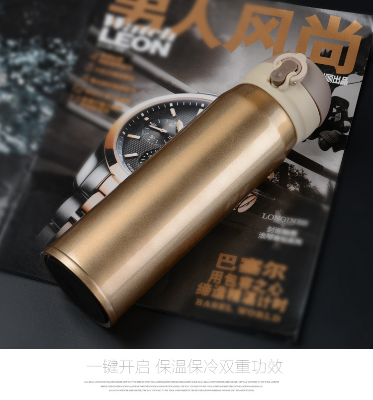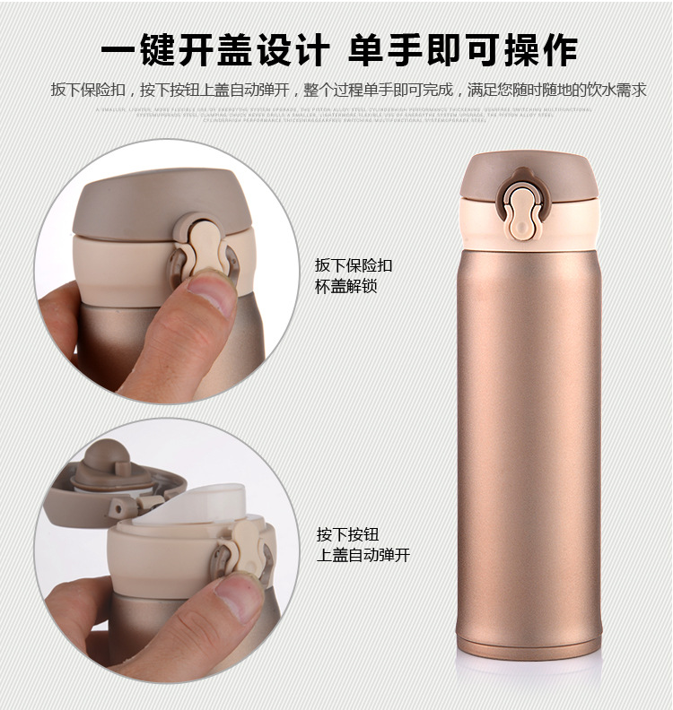 廠家直銷新款彈跳雙層不銹鋼保溫杯 直飲隨身杯 辦公車載杯刻字杯