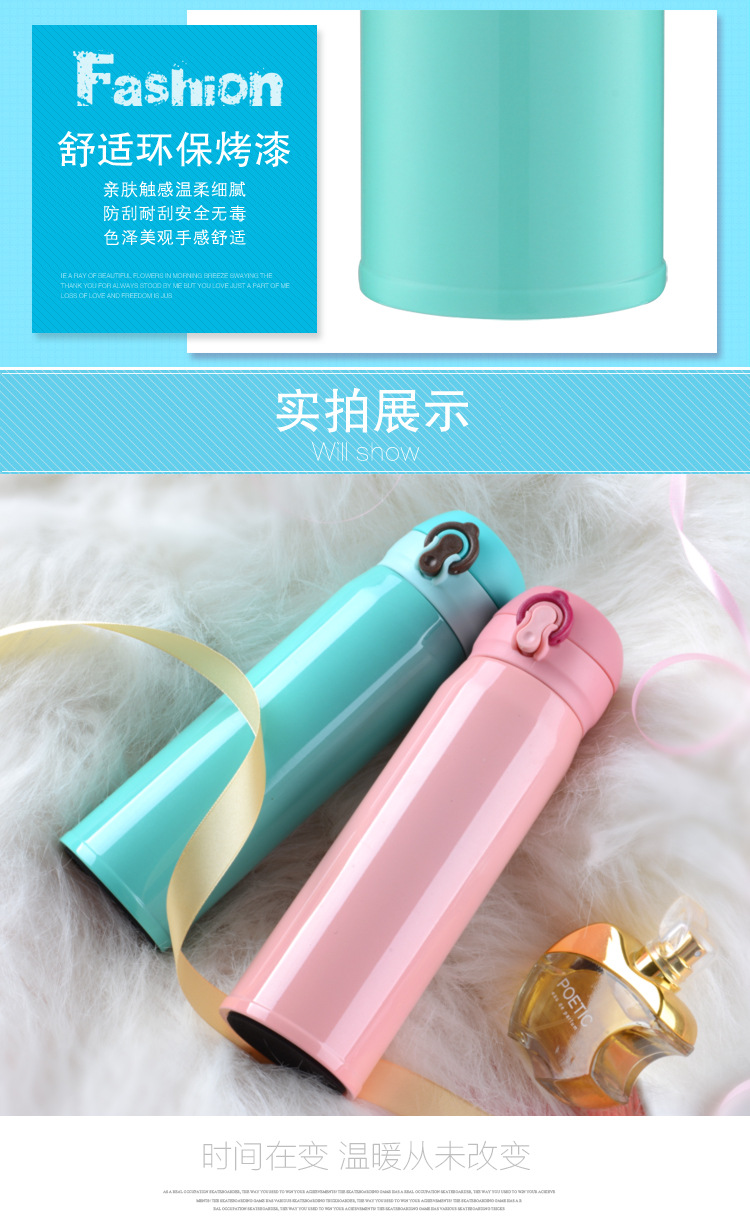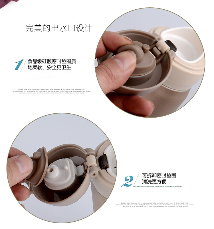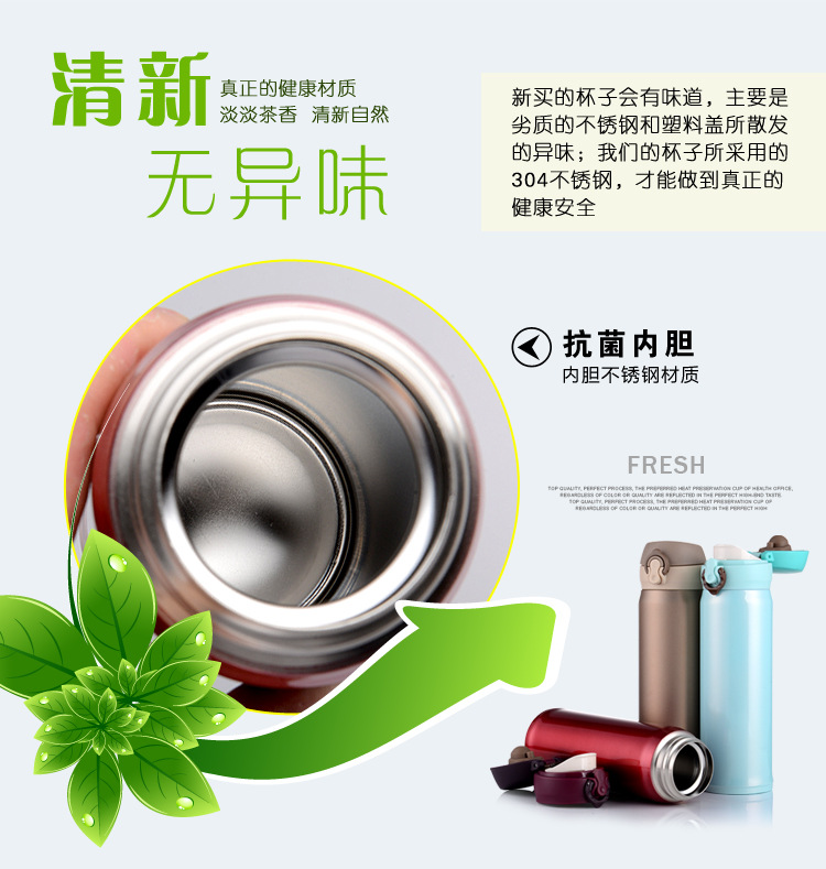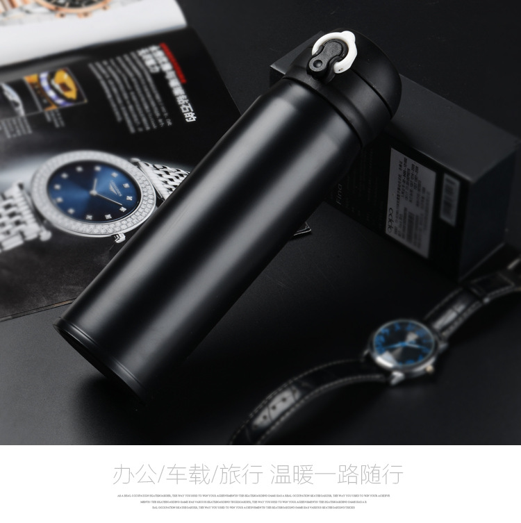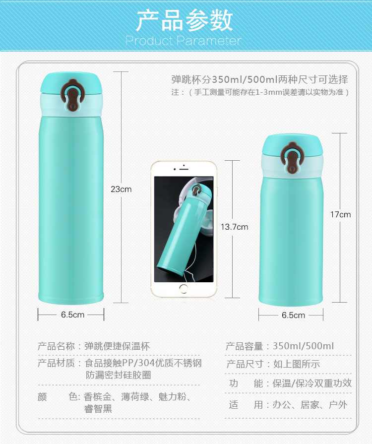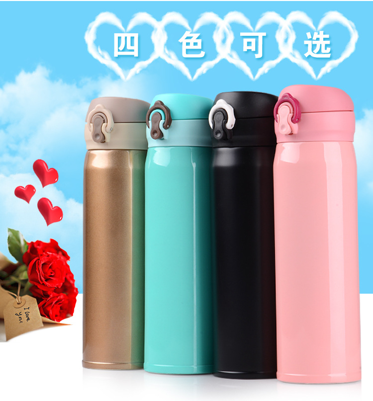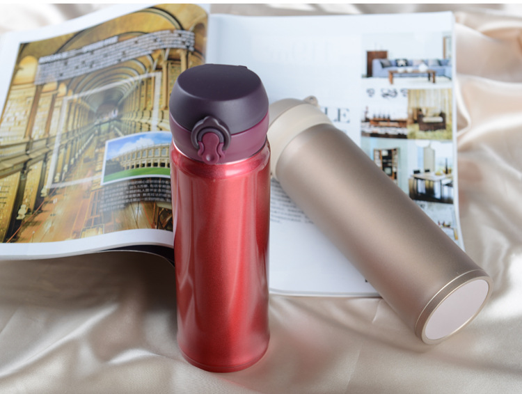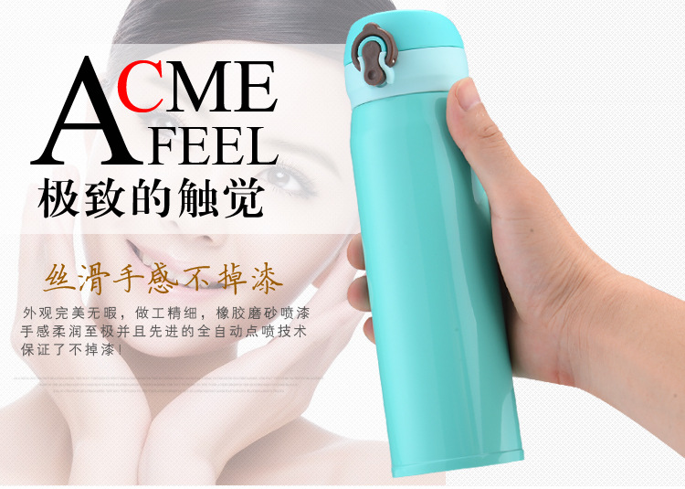 廠家直銷新款彈跳雙層不銹鋼保溫杯 直飲隨身杯 辦公車載杯刻字杯