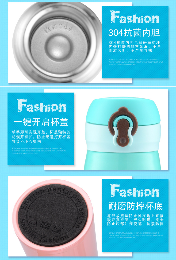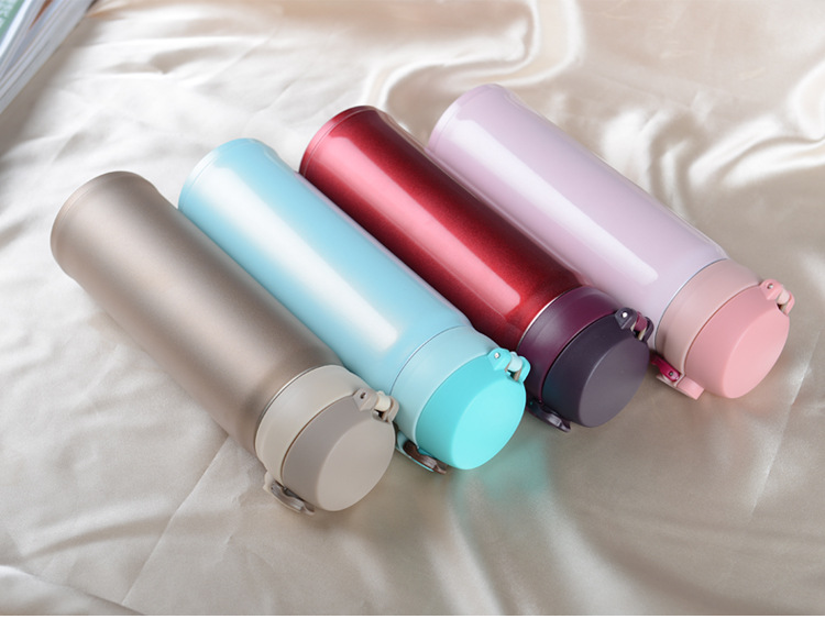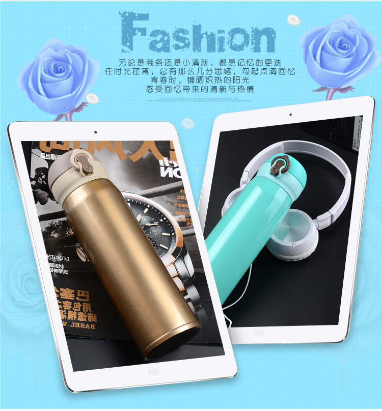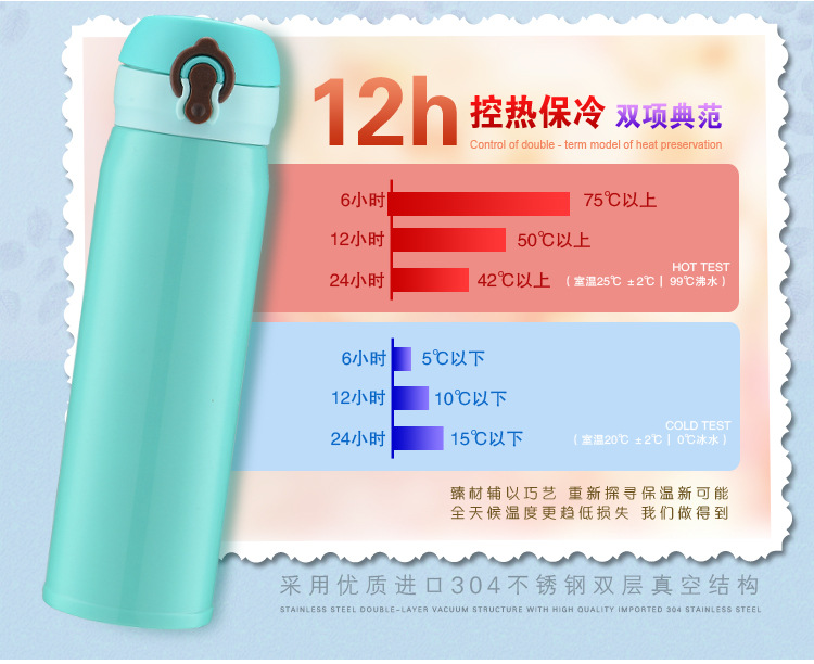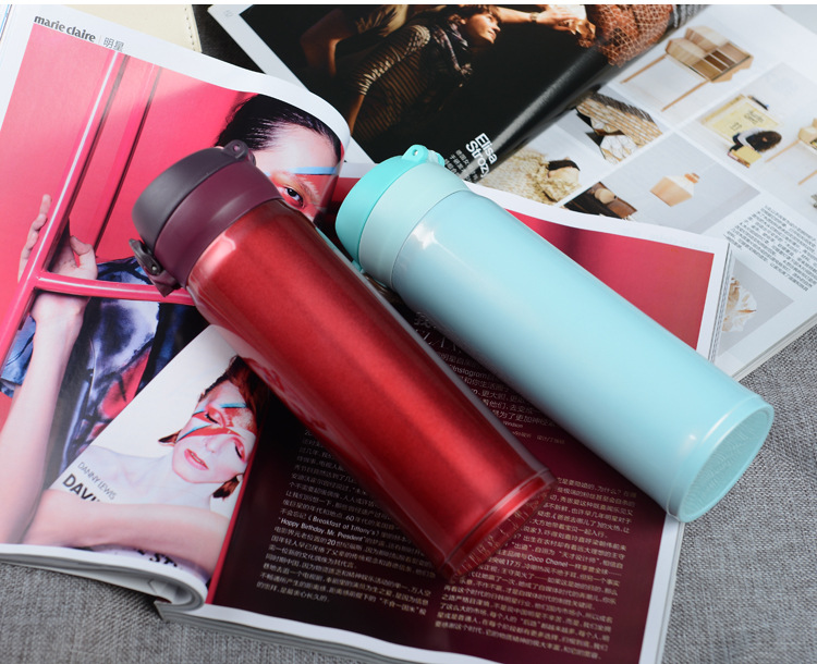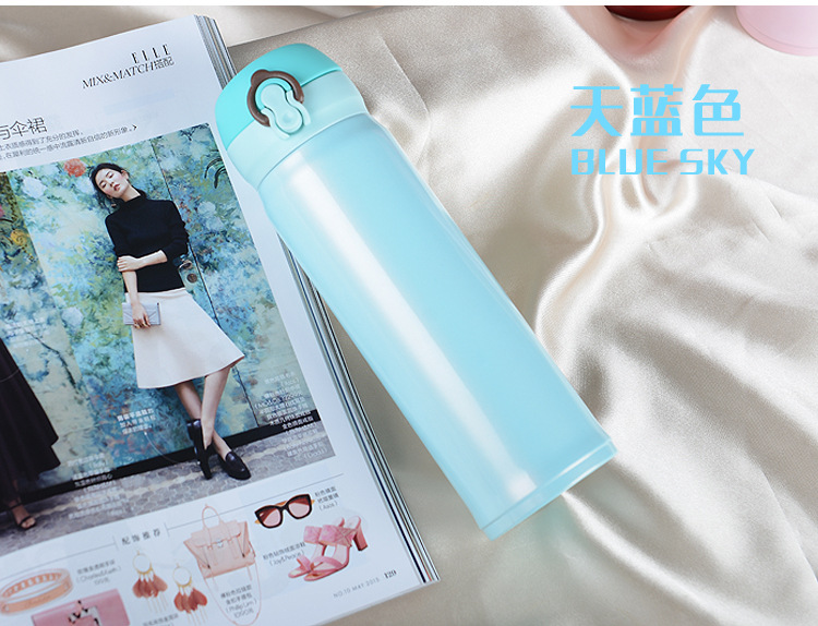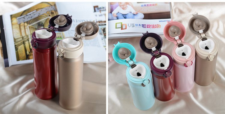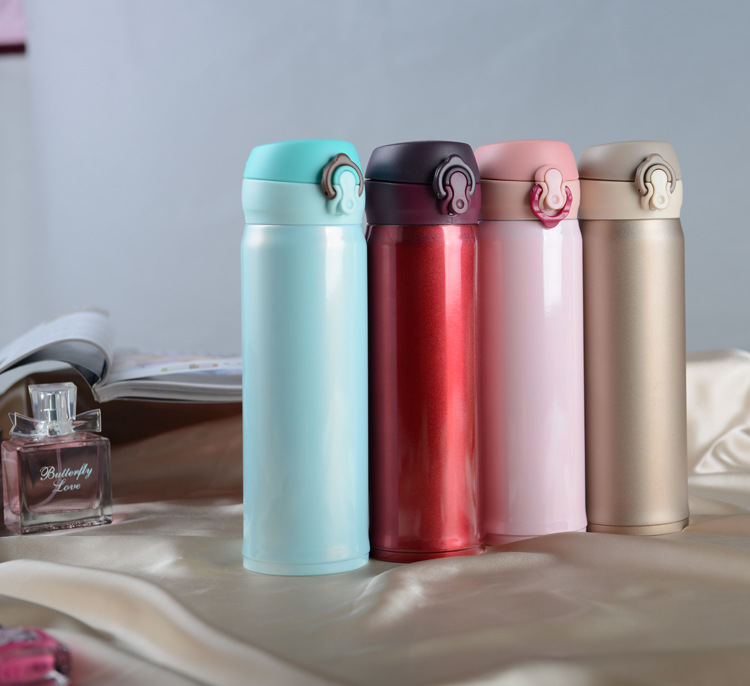 廠家直銷新款彈跳雙層不銹鋼保溫杯 直飲隨身杯 辦公車載杯刻字杯