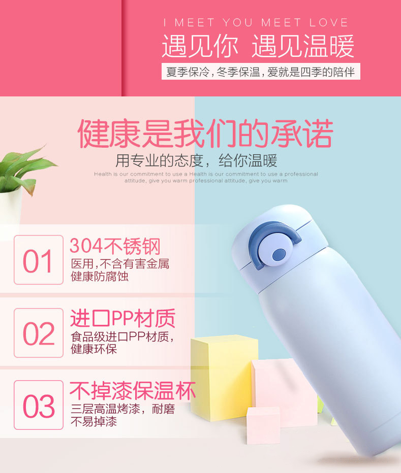 可愛彈跳不銹鋼雙層保溫杯304新款學生彈跳杯兒童隨手杯