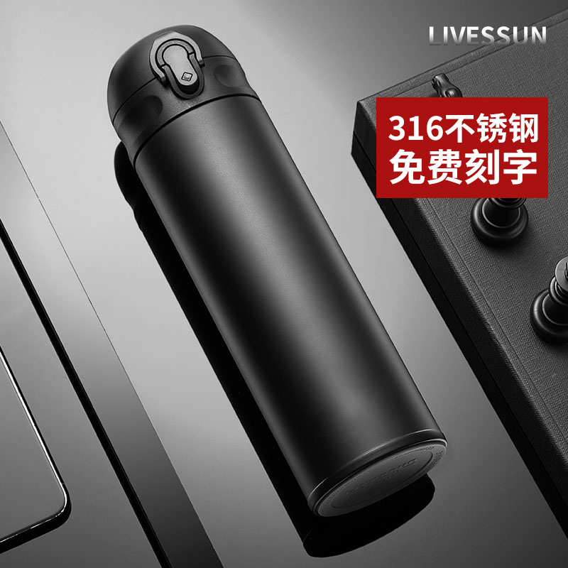 彈跳蓋保溫杯男士女車載便攜大容量316不銹鋼定制刻字水杯