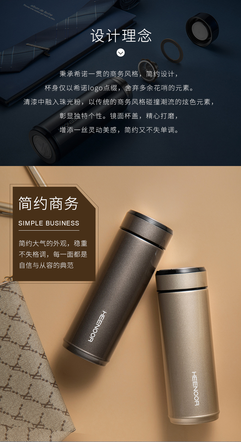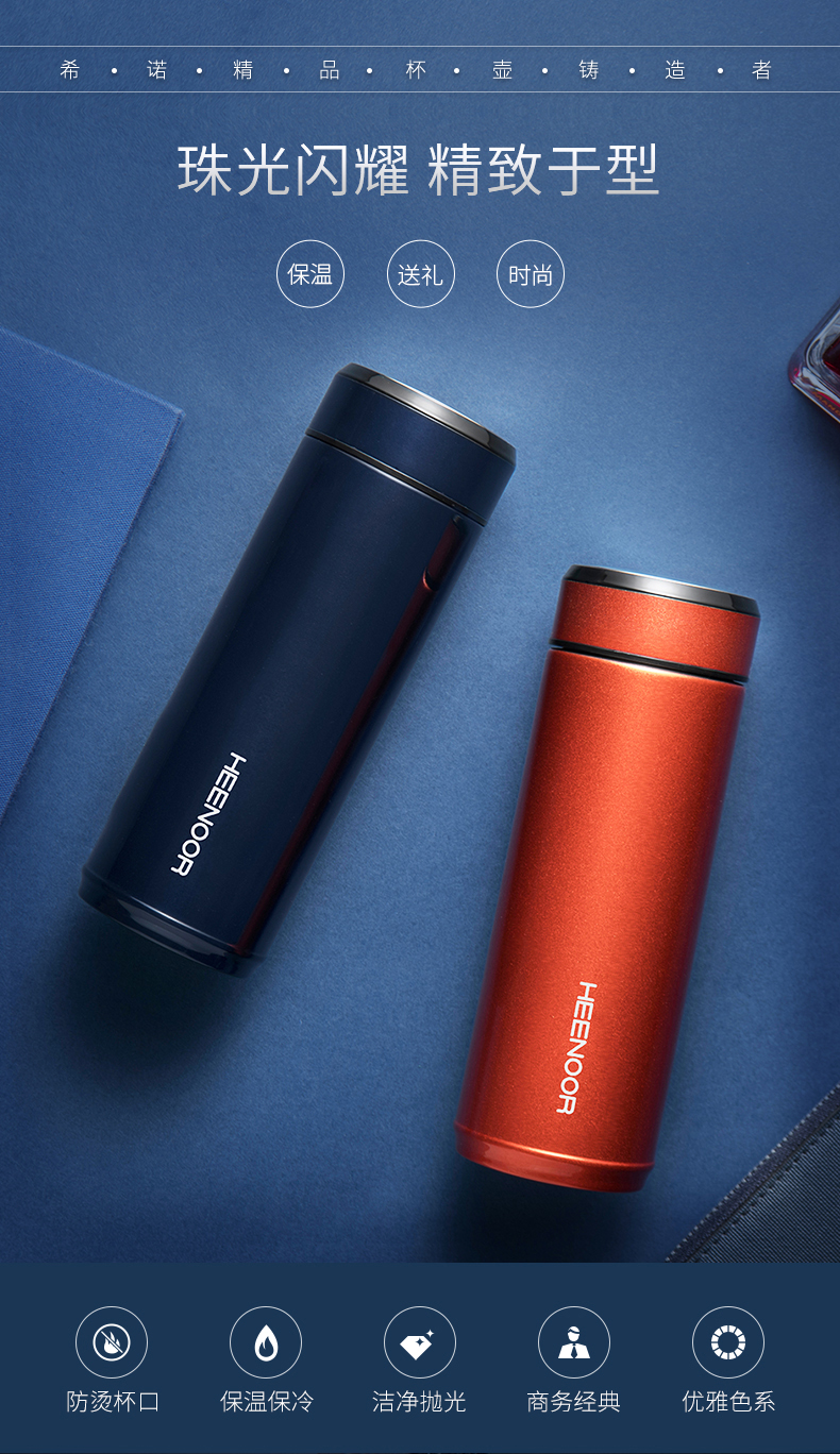 希諾保溫杯真空不銹鋼男女士時尚商務水杯便攜創意帶蓋泡茶杯子