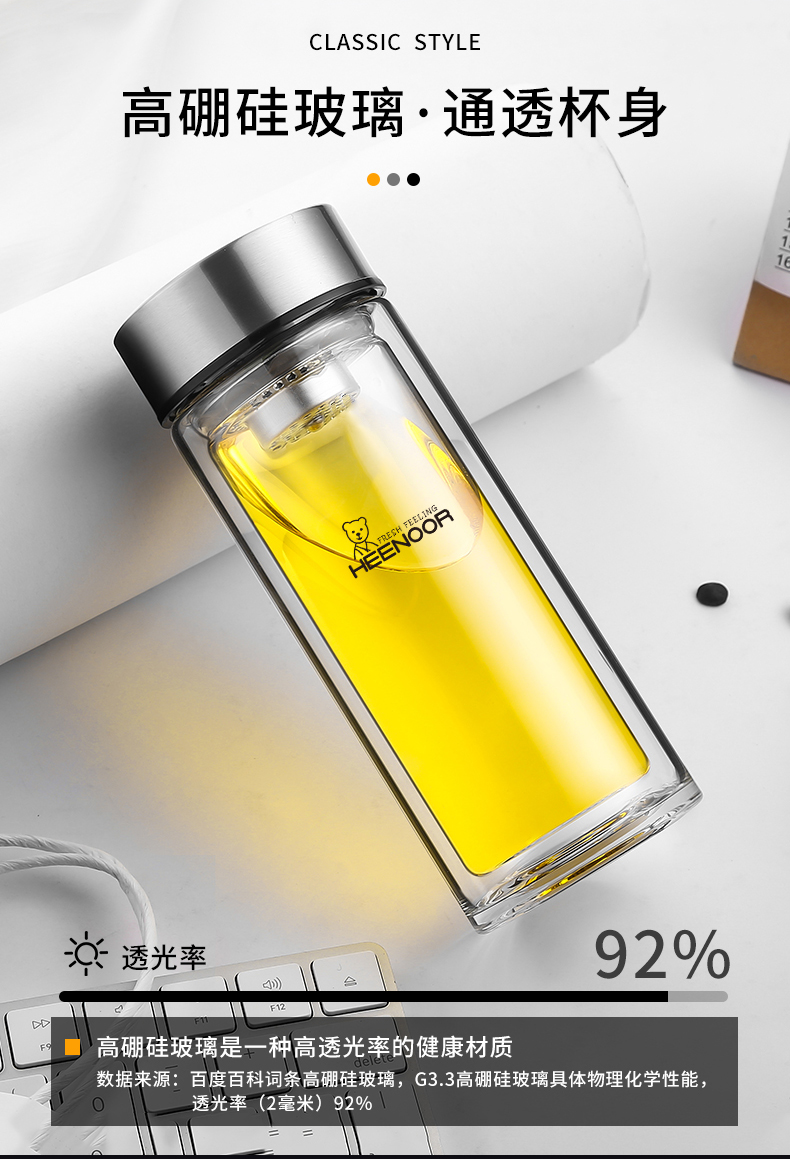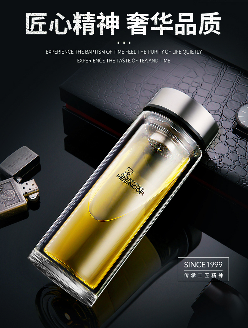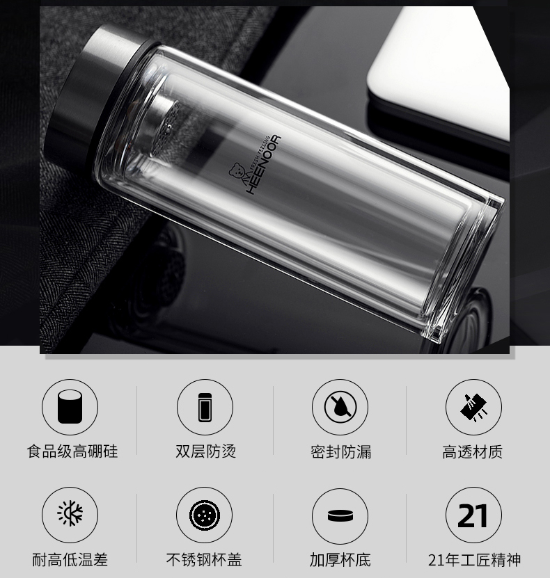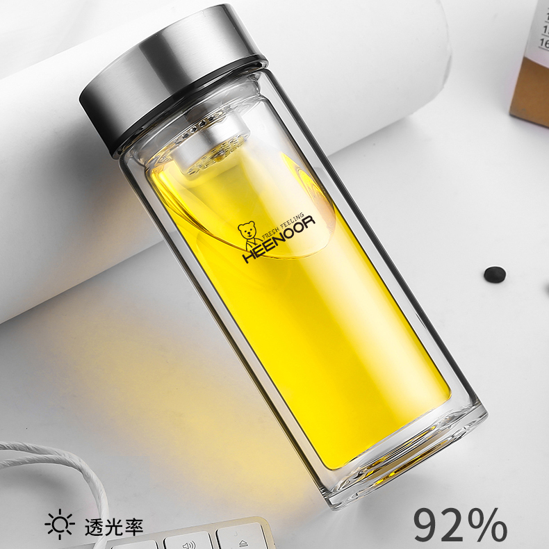 希諾雙層玻璃杯男女士家用高檔抗菌泡茶車載水杯隔熱茶杯透明杯子