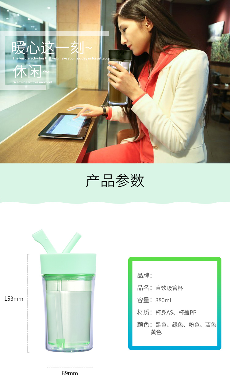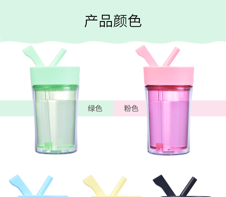 情侶咖啡杯創(chuàng)意水杯 辦公水杯 咖啡杯子 雙層塑料杯子 隨手杯 吸管杯