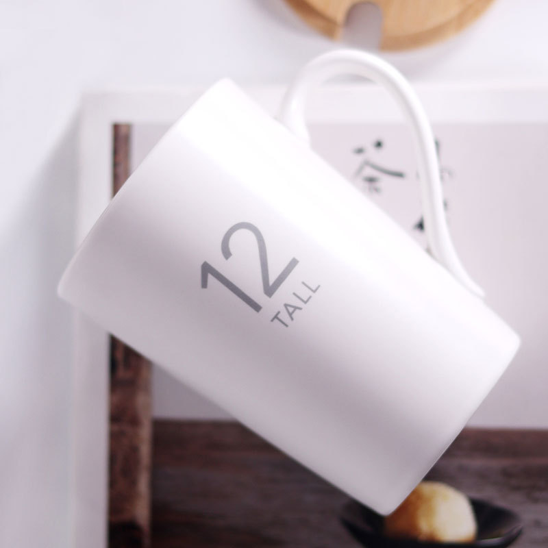 12號杯12盎司馬克杯 16數字陶瓷杯帶蓋 早餐牛奶咖啡杯可印logo