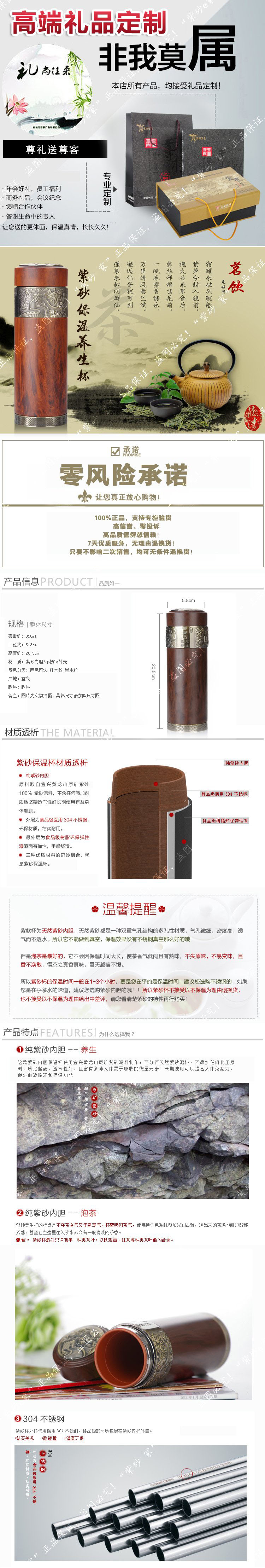 宜興紫砂保溫杯 木紋長城紫砂禮品杯